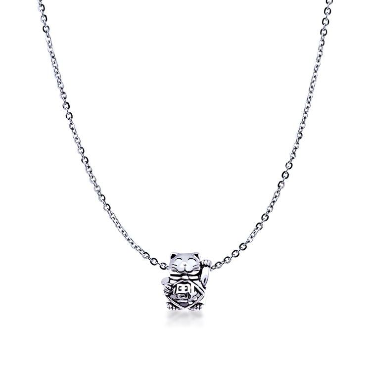 925純銀「招福貓」珠墜+贈白鋼項鍊-SNP0053